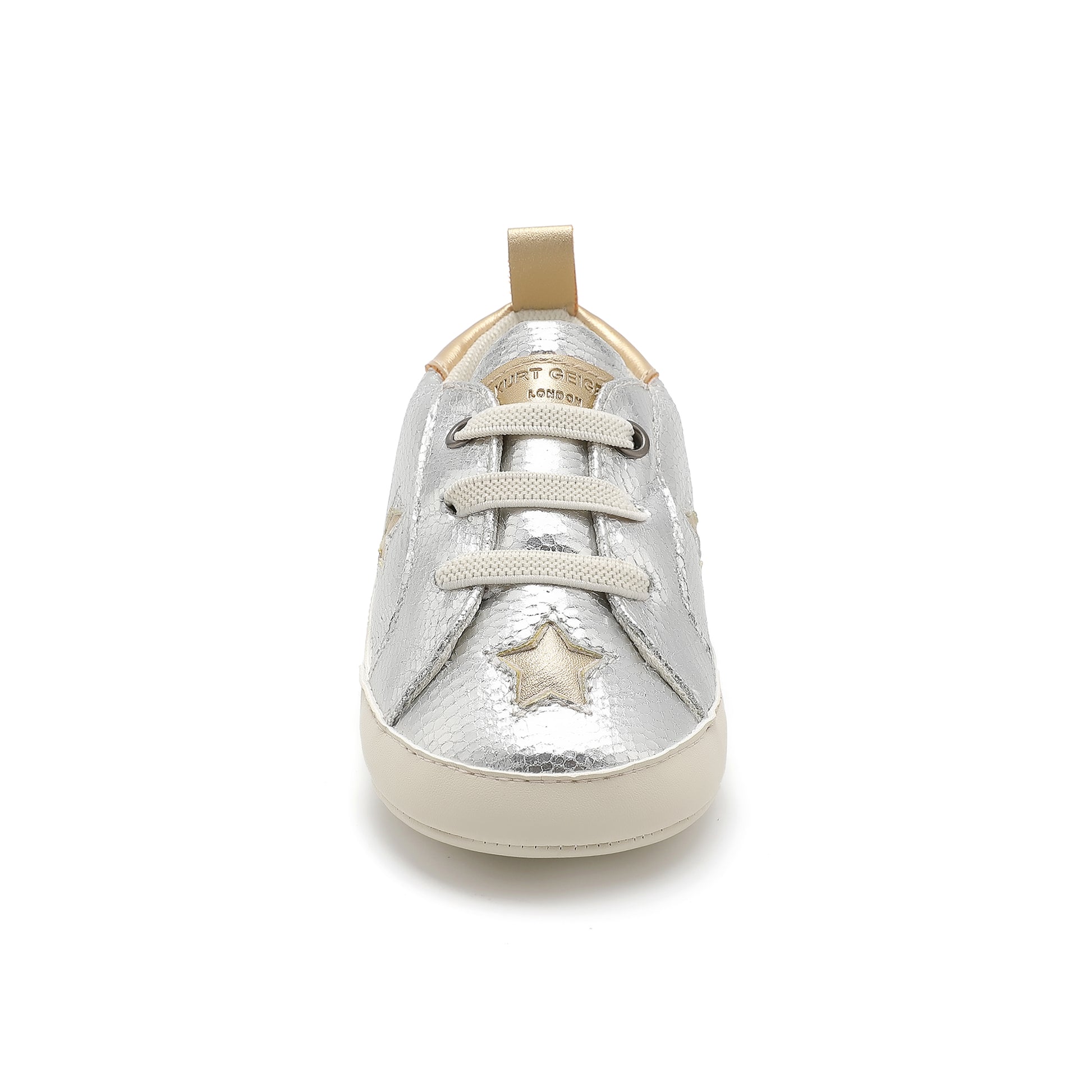 Shine bright in the Baby Lane Star sneaker. With a sleek, low-profile silhouette and classic lightweight soles, this little sneaker combines style and comfort for tiny feet on the move. The breathable, cushioned interior keeps every step cozy, while the Kurt Geiger London logo on the heel adds a signature touch of modern sophistication. Perfect for everyday adventures or special occasions, these sneakers bring a hint of sparkle to every outfit.